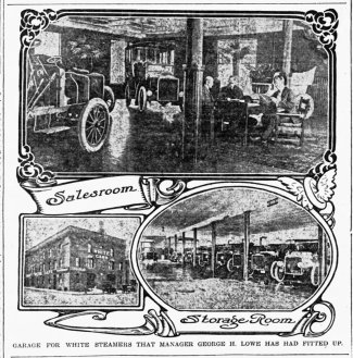On January 31, 1905, the White Sewing Machine Company purchased the property from Franklin Riedell and converted it into a salesroom, office, repair, and garage facility for the sale of its White steam-powered automobiles. In 1906-1907, they built a six-story garage on the north side of the block, at 341 Newbury.