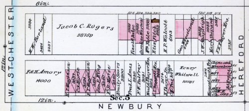 The south side of Newbury developed more quickly than the north side because it abutted the Boston and Albany Railroad and land owned by the City of Boston rather than residential property.