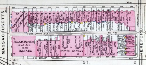 Most of the private stables on the block remained as such until World War I, but by the early 1920s, they had been converted into private garages or other uses.