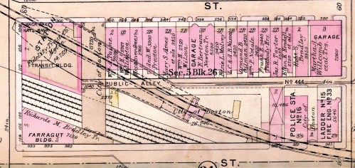 As with the north side of the block, by the early 1920s, all of the remaining stables on the south side of the block had been converted into private garages or other uses.